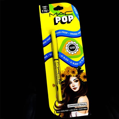 Pop Mac Black Kajal Pencil | Longwear Eye Definition Stick | Smudge Proof Waterproof Liner | Deep Intense Color | Smooth Glide Finish